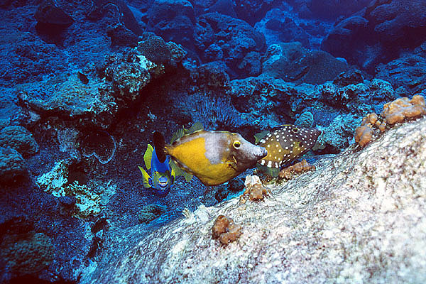whitespotted filefish, honeycomb cowfish, rock beauties, and more. There's one fish I