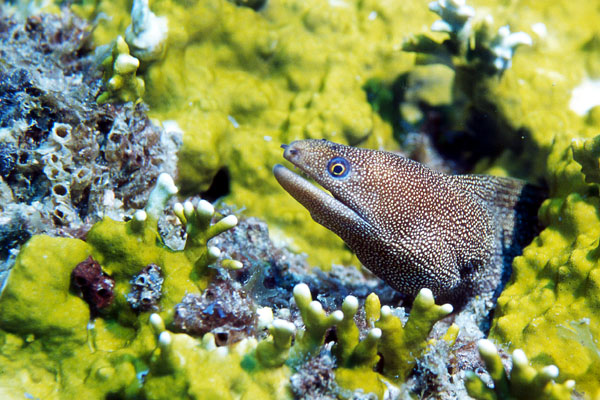 trunkfish, spotted morays, goldentail morays, lobsters, crabs, and fish galore. I