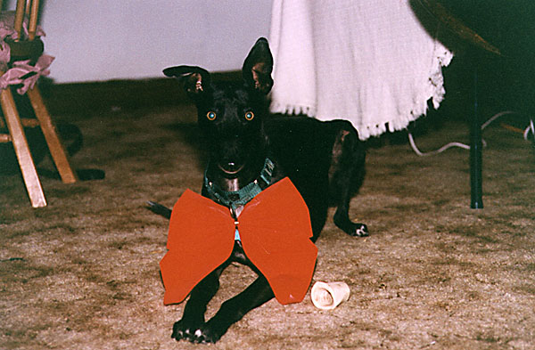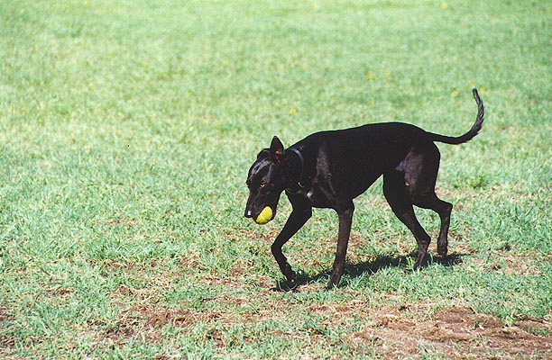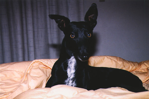 Sadie's PageSadie is a Greyhound we adopted from a woman we met in Austin's Pease Park while we were playing disc golf. The woman in question had adopted Sadie from another family less than a month before, and wanted to be rid of Sadie...It was a tough month for Sadie, but the years since then have been pretty good for her. Links to Greyhound pages: Sadie is shy around cameras, and she's black, both of which combine to make it really difficult to get a good picture of her. Sometimes you just have to make do. Here's Sadie. Click on an image to see a larger version.