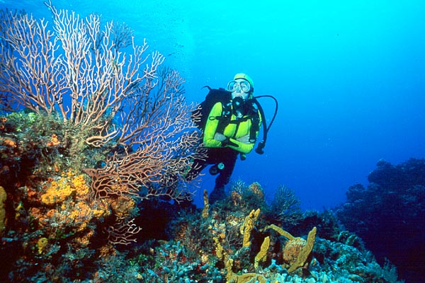 Annemarie and a sea fan at Santa Rosa