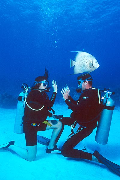 | Scuba training, Grand Cayman Style Danny works with a student. |
